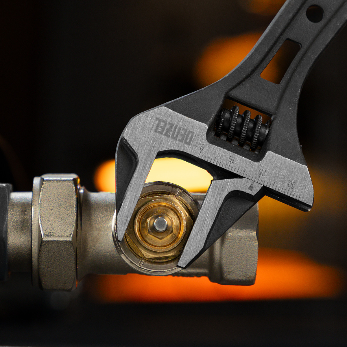 - Удобная эксплуатация — метрическая линейка на ключе помогает выставить нужный размах зева.