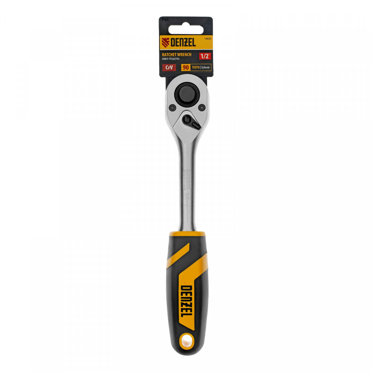 Ключ-трещотка 1/2", 90 зубьев, с быстрым сбросом, CrV Denzel