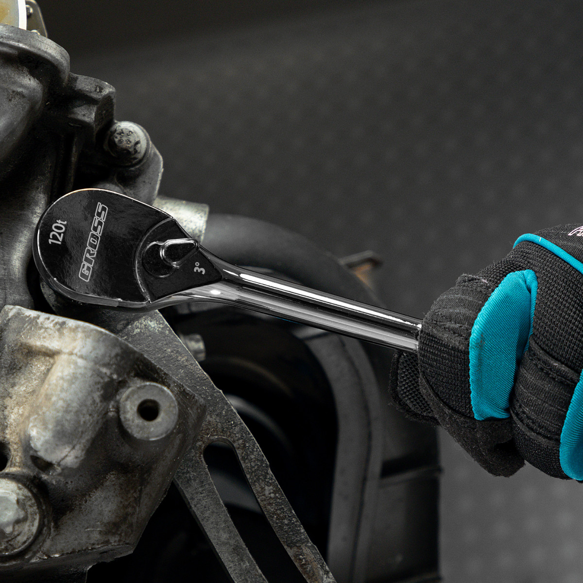 Ключ-трещотка 3/8", CrV, 120 зубьев, цельнометаллический, хром Gross