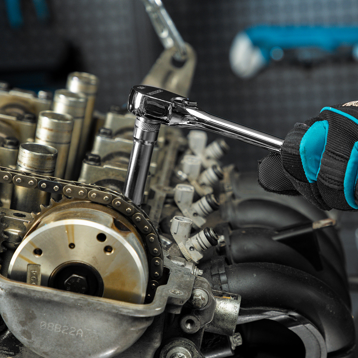 Храповый механизм с 120 зубьями обеспечивает плавное вращение инструмента при минимальном шаге.