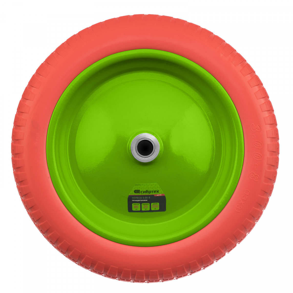 Колесо полиуретановое 3.00-8, длина оси 80 мм, подшипник 20 мм Сибртех