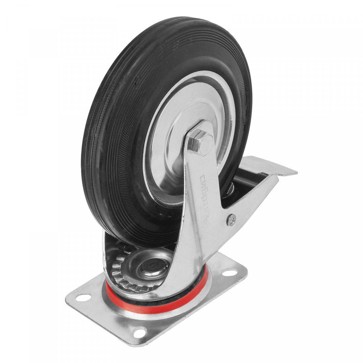 Колесо поворотное с тормозом D 200 мм, крепление платформенное Сибртех