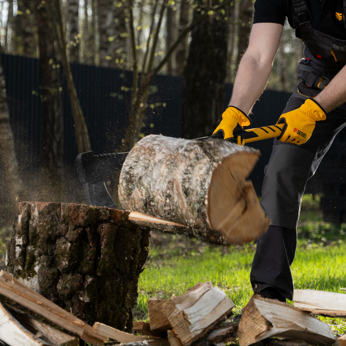 • Безопасное хранение и транспортировка — колун поставляется с защитным кожухом для лезвия.