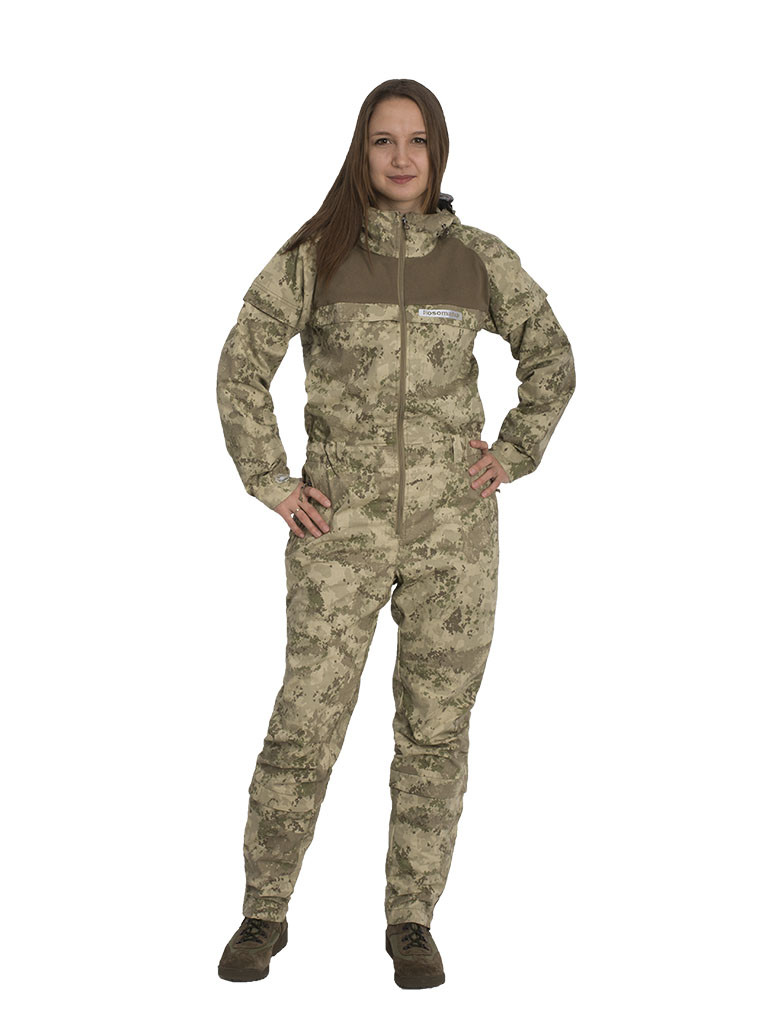 Комбинезон женский противоэнцефалитный ТМ «Росомаха» пропитанный акарицидным средством. Предназначен для любителей выездов на природу, походов, дачников, людей, которые по роду своей профессиональной деятельности проводят много времени на природе и нуждаются в дополнительной защите от пчел, комаров, слепней, клещей и т.п