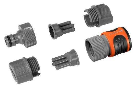 - В комплект входят все необходимые соединительные элементы базовой системы Original GARDENA для подключения шланга-дождевателя GARDENA (элементы для входного и выходного концов шланга). Простая сборка элементов.