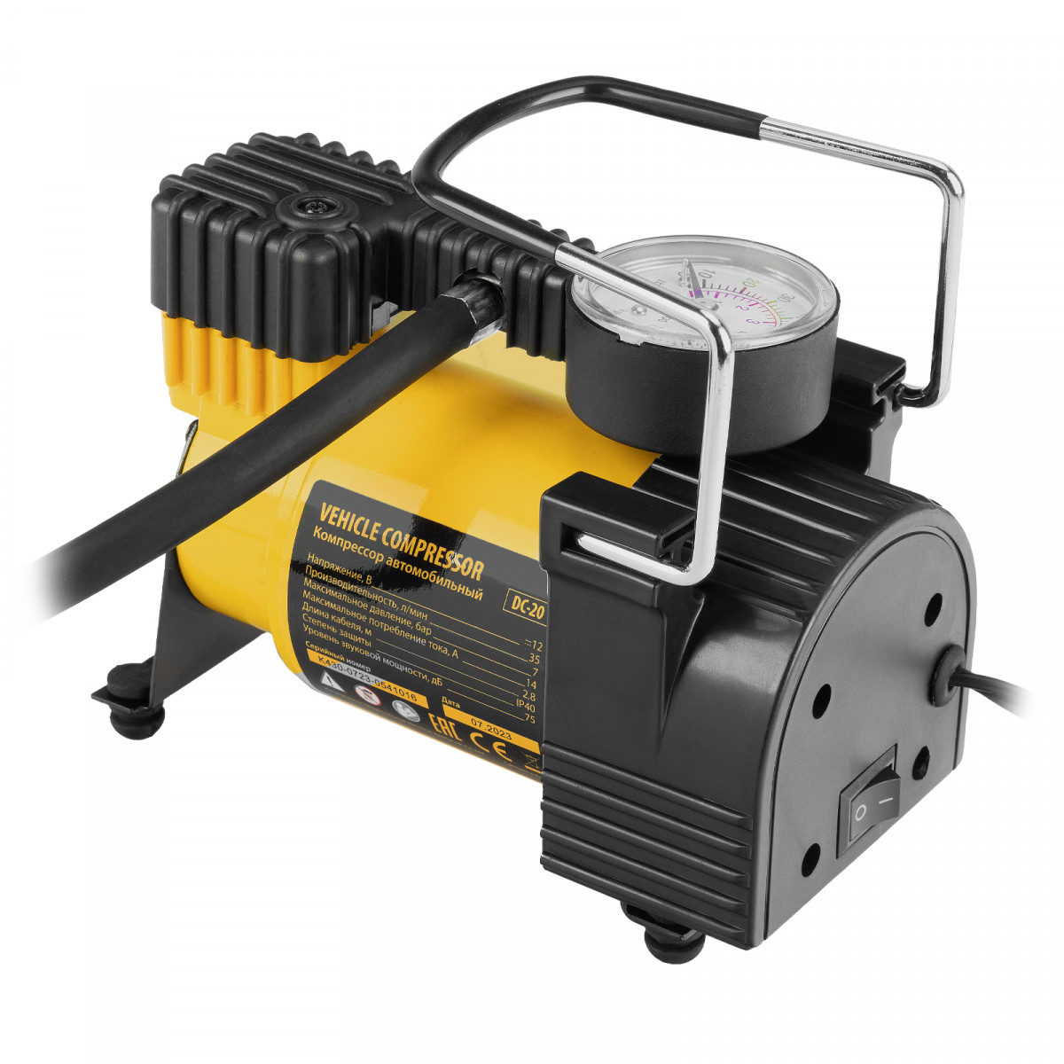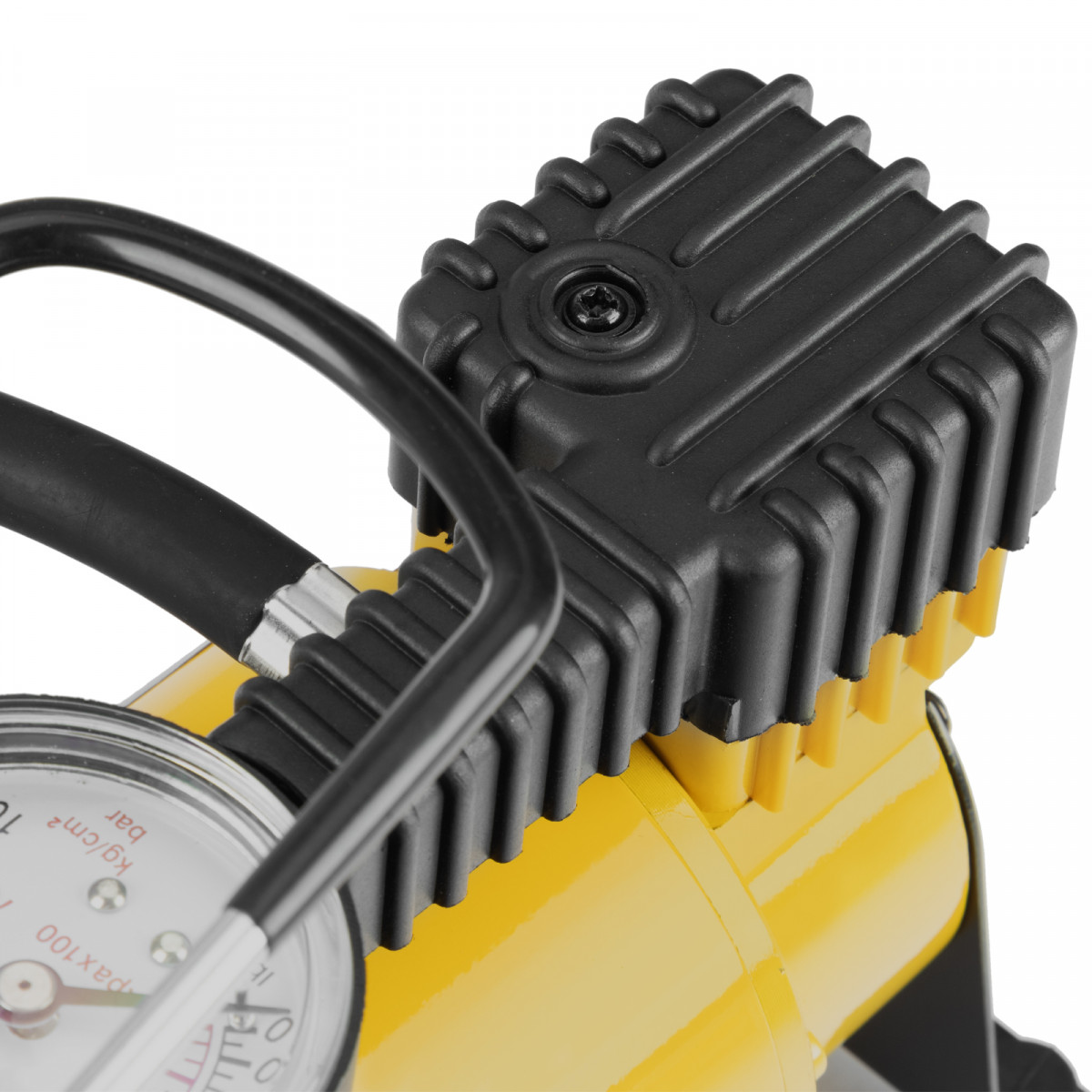 • Компрессор оснащен манометром, что упрощает контроль давления и позволяет вовремя прекратить накачку.