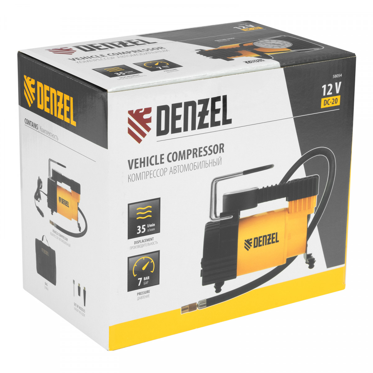 Компрессор автомобильный DС-20,12 В, 7 атм, 35 л/мин Denzel