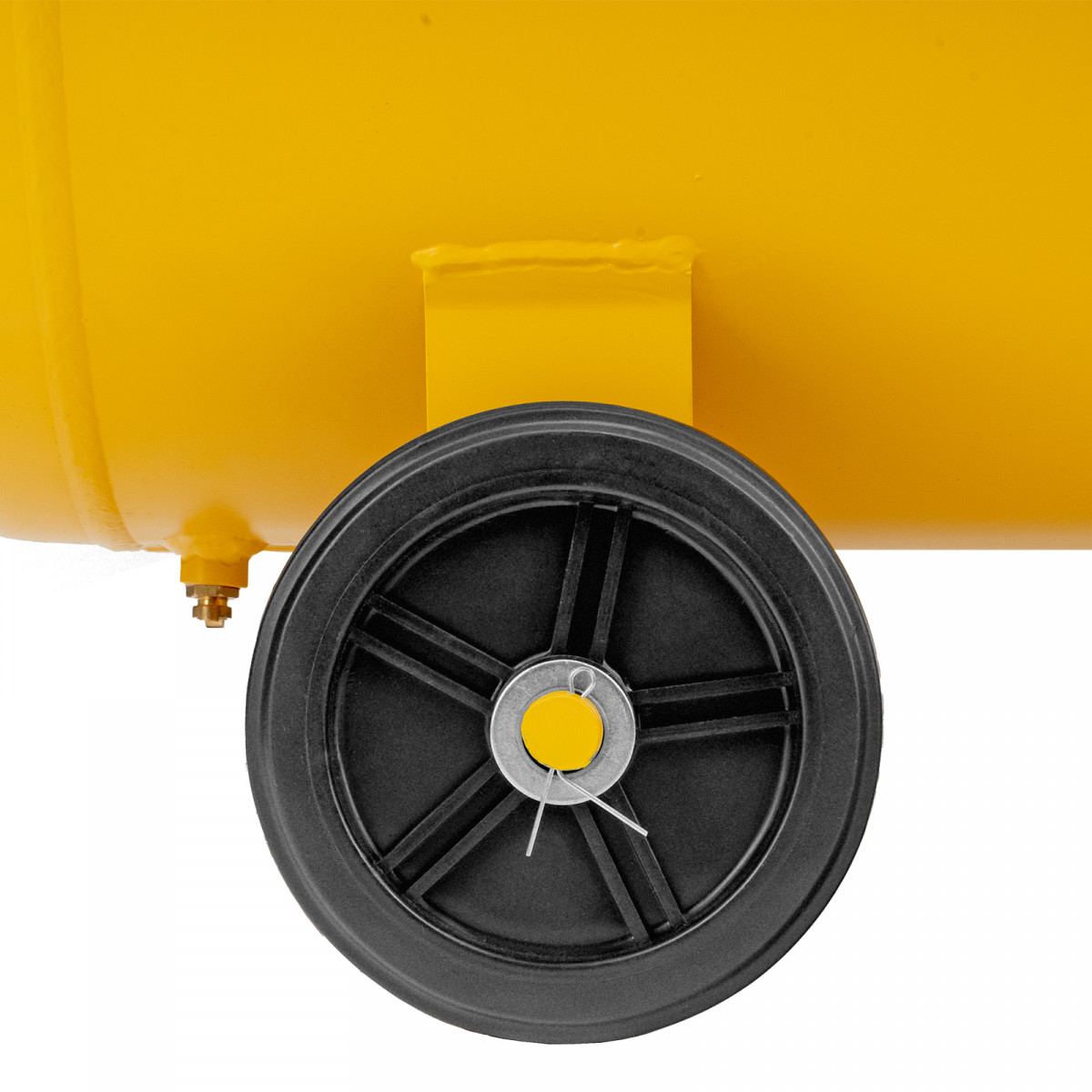 - Мобильность — 4 колеса, в том числе 2 поворотных, и транспортировочная рукоятка упрощают перемещение компрессора по рабочей зоне.