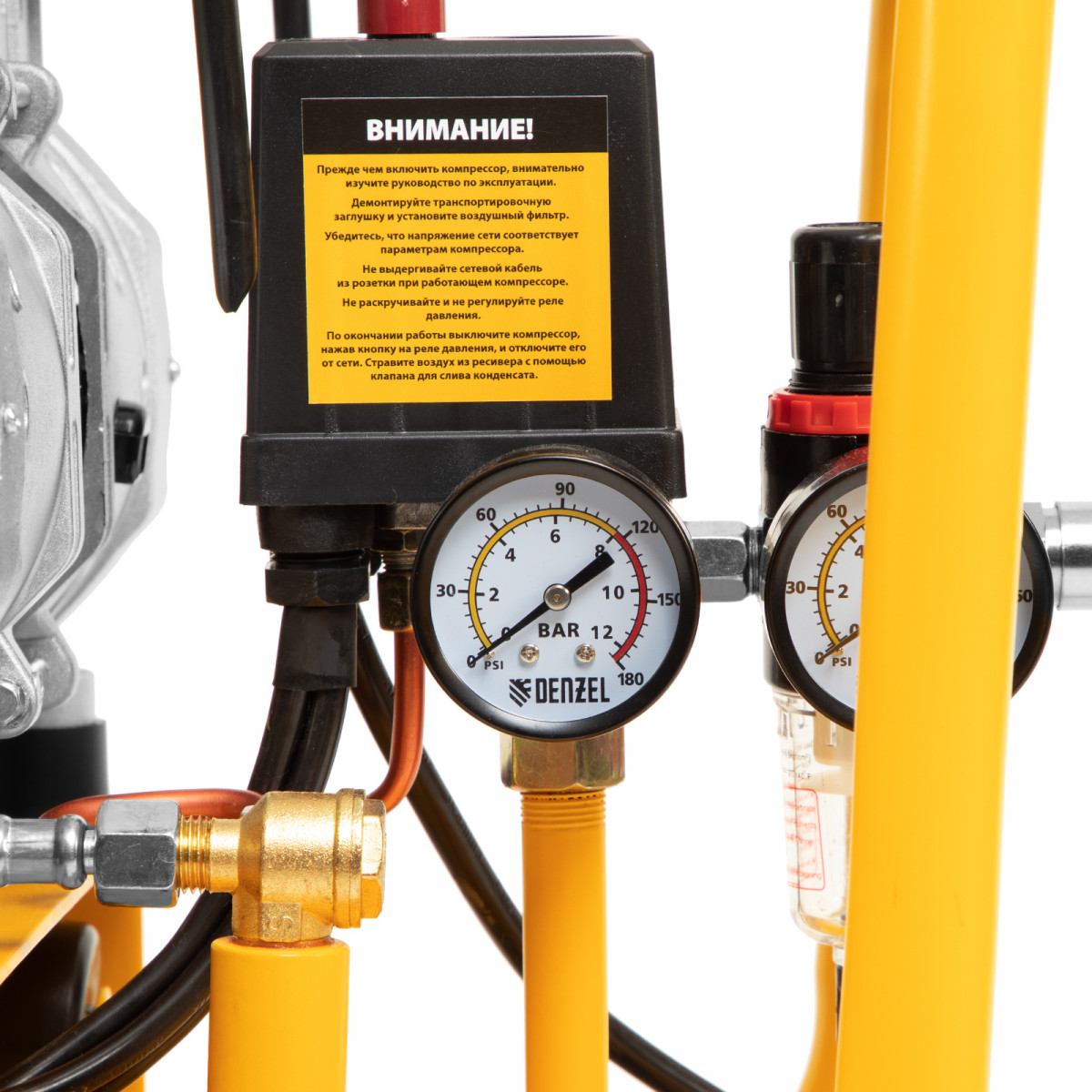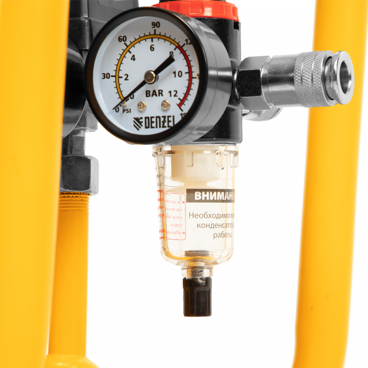 Безмасляный малошумный компрессор Denzel DLS 2200/50 58031 мощностью 2200 (2 х 1100) Вт, объемом ресивера 50 л и производительностью 380 л/мин предназначен для обеспечения пневмоинструмента сжатым воздухом, подаваемым под давлением до 8 бар. Частота вращения вала составляет 2800 об/мин, что позволило добиться увеличения производительности более чем на 40%. Компрессор позволяет подключить пневматический заклепочник, дрель, шлифмашину и т.д. Оптимален для работы с краскопультом и для продувки электронных компонентов, т. к. в сжатом воздухе отсутствуют частицы масла. Компрессор пригодится в мастерской, гараже, на строительной площадке.