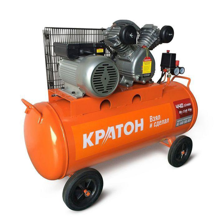 Двухцилиндровый компрессор AC-440-100-BDV марки Кратон, благодаря высокой производительности и повышенной мощности электродвигателя, допускается к использованию с различным пневмоинструментом на крупном производстве, в цеху или СТО. Конструкция изготовлена из высокопрочного сплава и оснащена системой охлаждения, благодаря которой компрессор может работать длительное время без перегрева. Прочный кожух надежно укрывает систему передачи от механических повреждений.