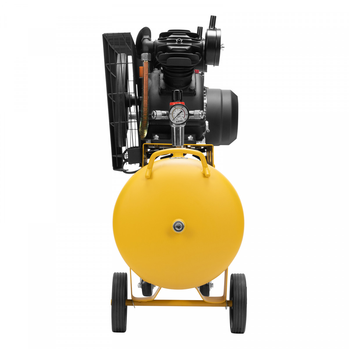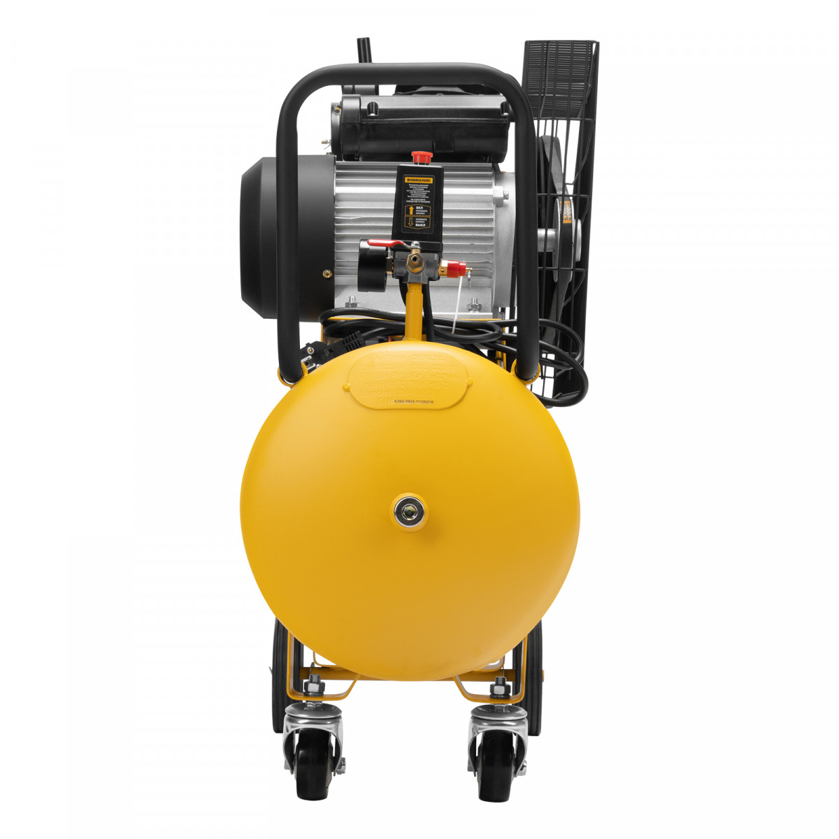 - Быстрая транспортировка — колеса и П-образная ручка позволяют легко разворачивать и транспортировать компрессор в нужное место.