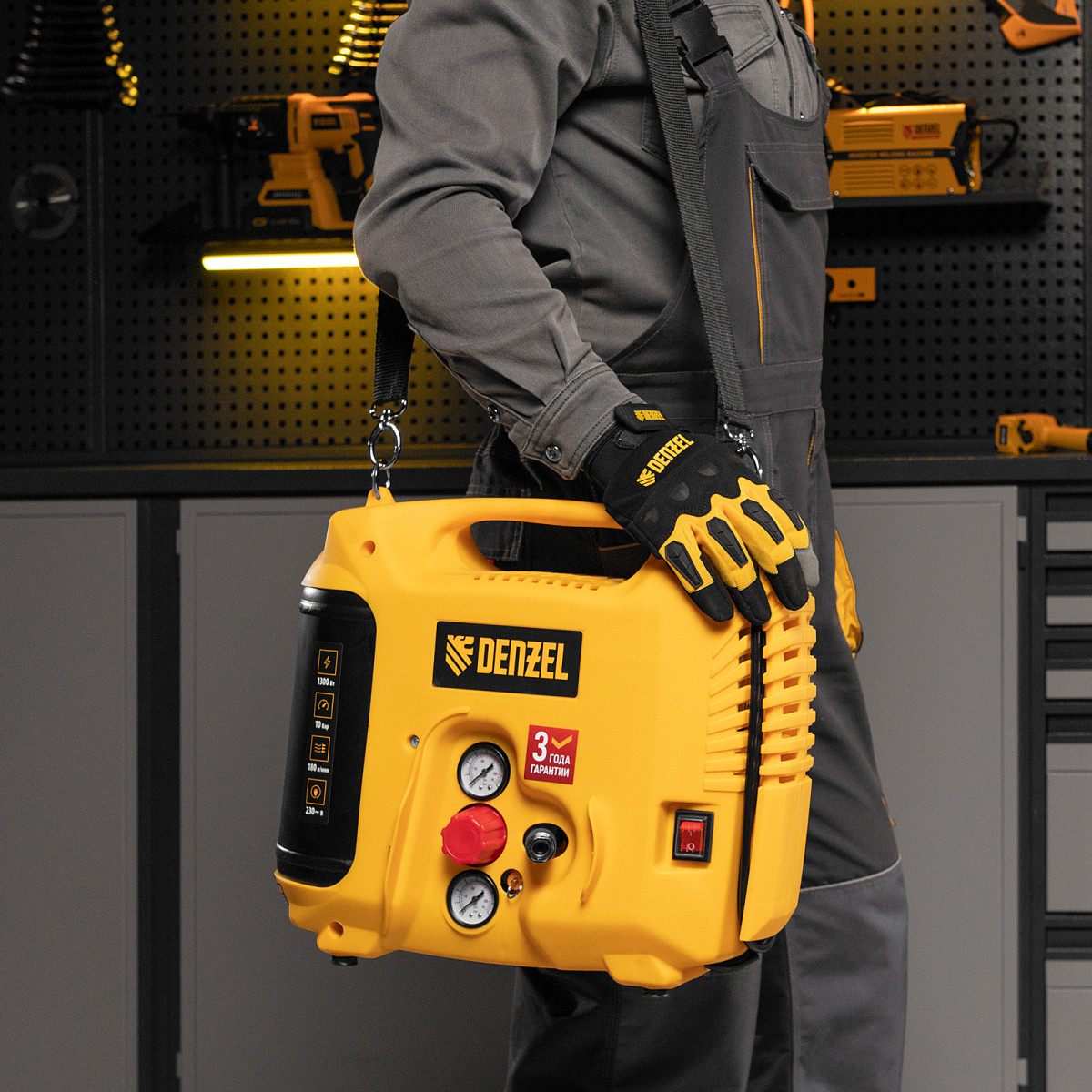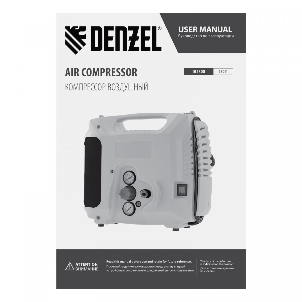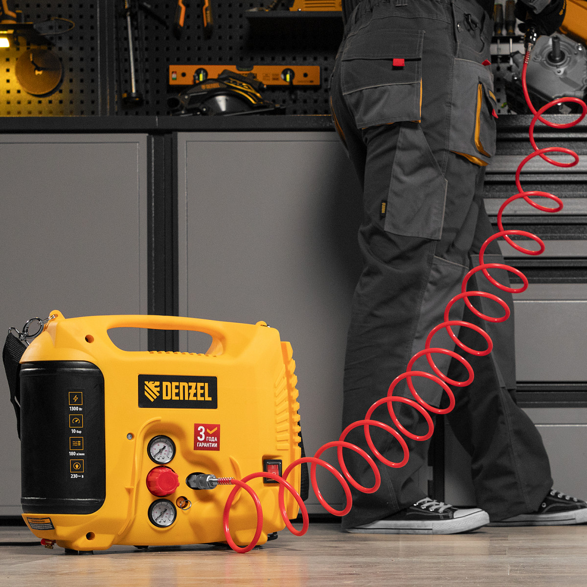Компрессор воздушный DL1300, 10 бар, 1,3 кВт 180 л/мин 5 л, с набором аксессуаров Denzel