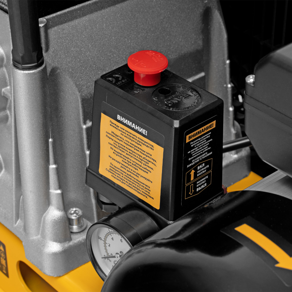 • Удобный контроль давления в ресивере и пневмомагистрали — компрессор оснащен двумя механическими манометрами.