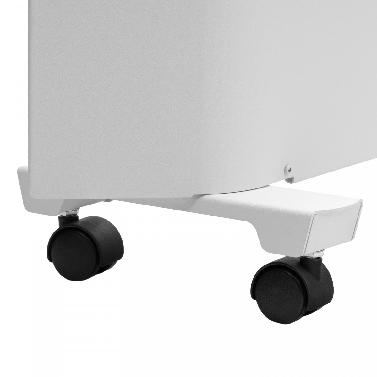 • Напольная или настенная установка — в комплект поставки включена цельнометаллическая крепежная рамка для стены, а также стальные ножки с колесами.