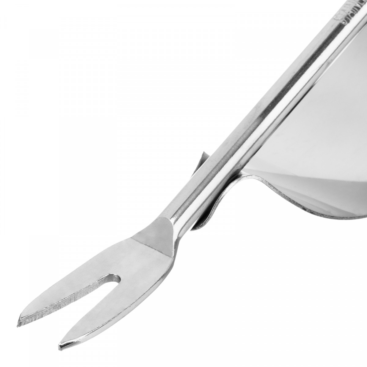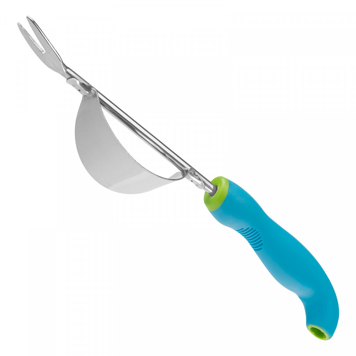 • Продуманная конструкция — заостренный раздвоенный наконечник легко проникает в грунт и захватывает сорняк с корнем, а полукруглый упор позволяет без труда извлечь его из почвы, не повредив культурные растения.