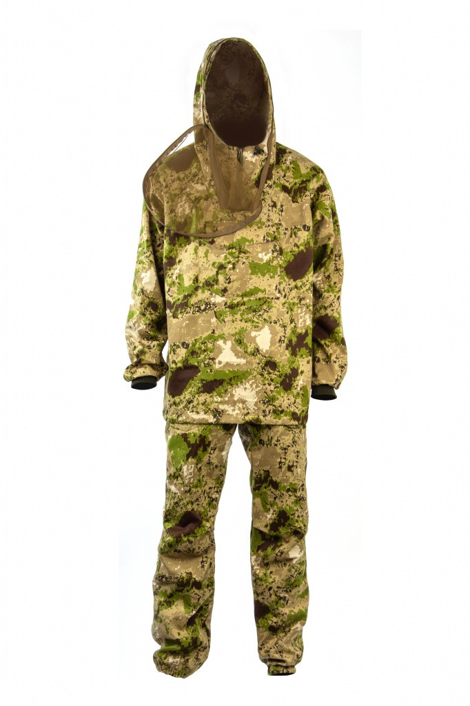 Сетка накомарника съемная и легко убирается в потайной карман. Плотная ткань создает надежную защиту, позволяет телу «дышать» и надежно защищает от насекомых. Рукава оснащены плотными трикотажными манжетами. Этот костюм отлично подойдет для всех, кто много бывает в лесу.