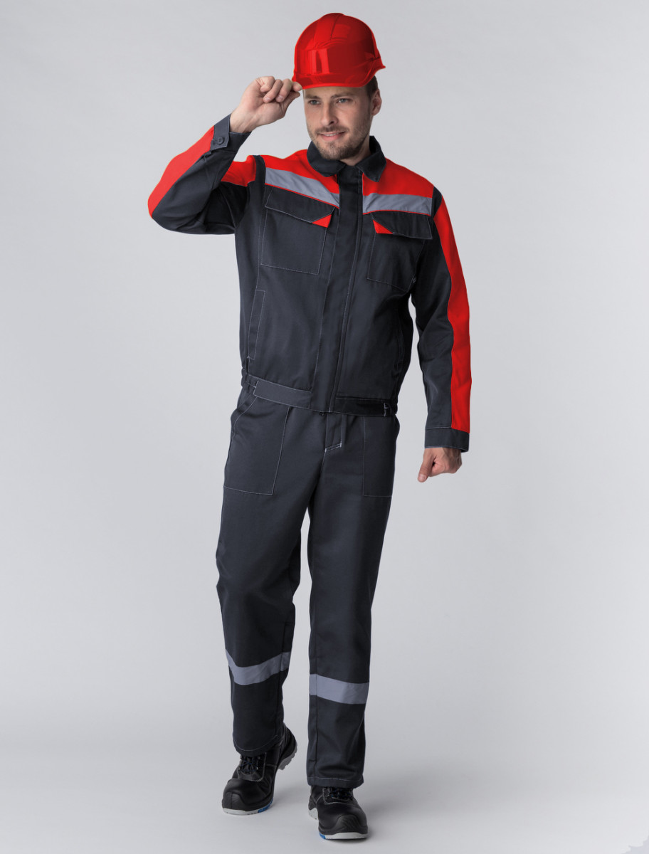 Костюм летний СФЕРА NEW смесовая,210/темно серый/красный