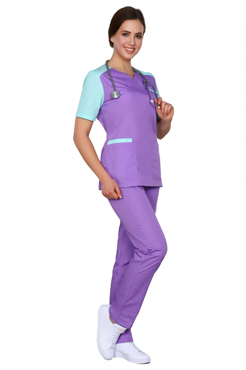 Костюм медицинский женский №460 тк.ТиСи DoctorBIG сирень/мята