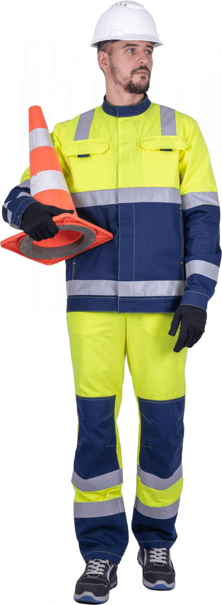 Костюм мужской сигнальный РЕФЛЕКТ-1 куртка, полукомбинезон, флуоресцентный желтый/синий
