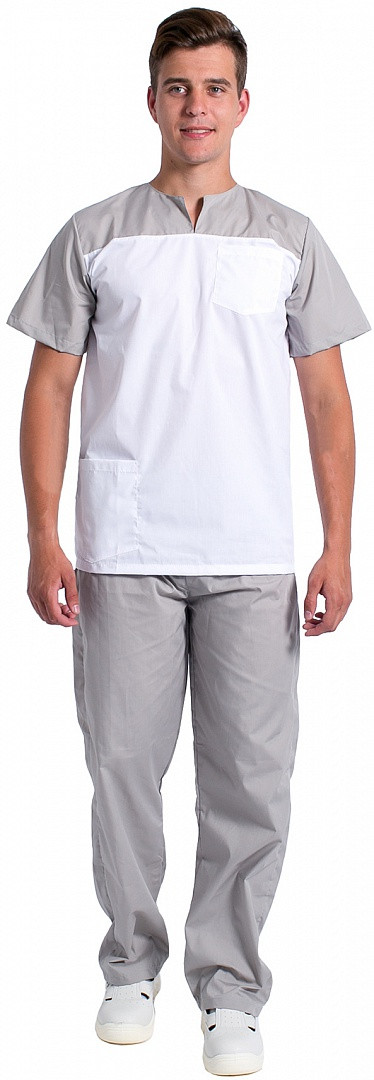 Костюм мужской Стоматолог (тк.ТиСи), серый/белый
