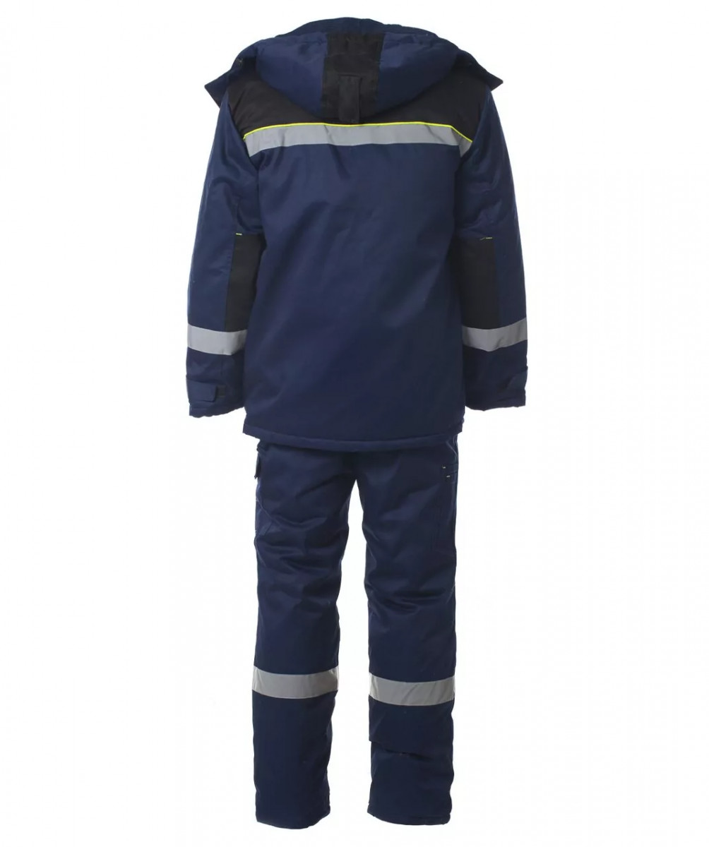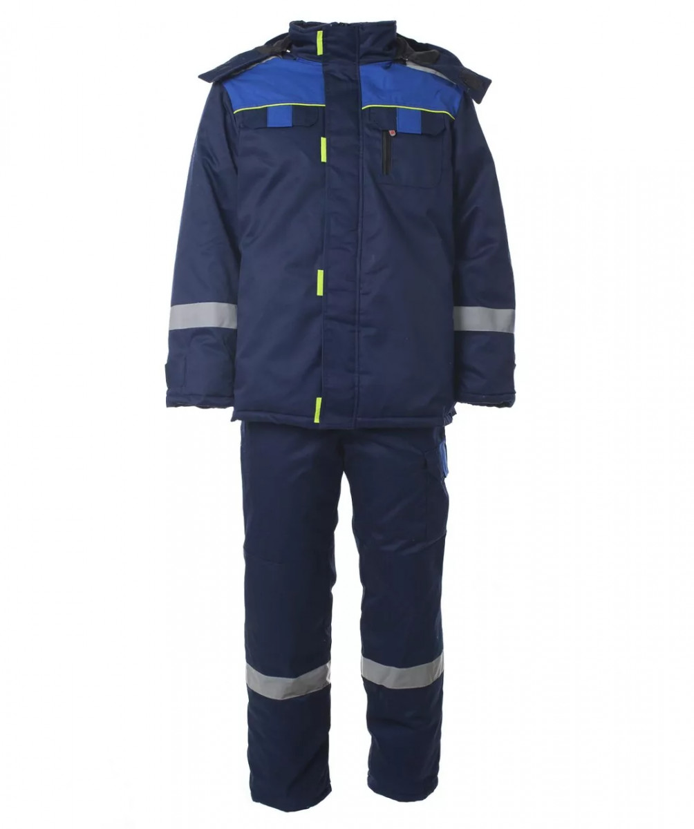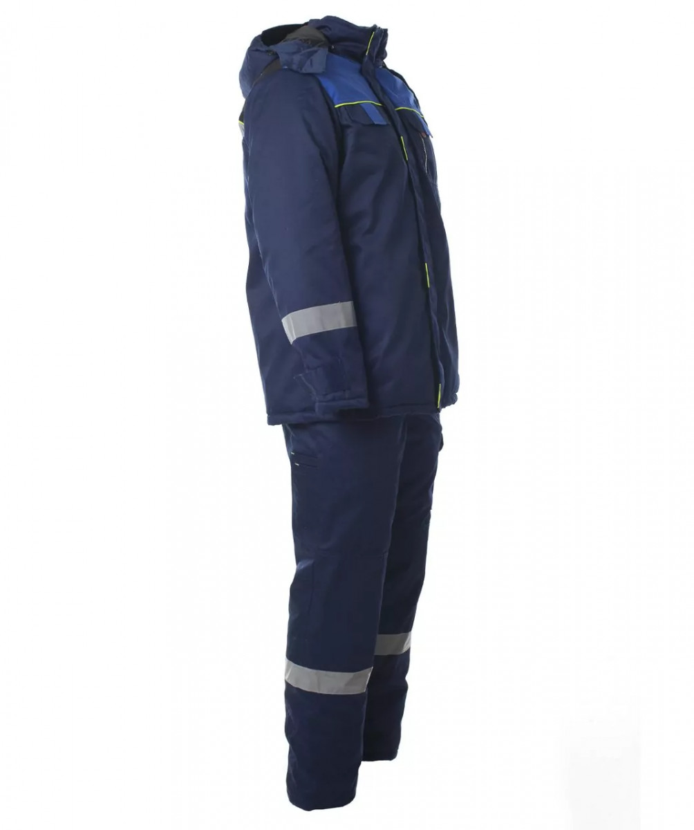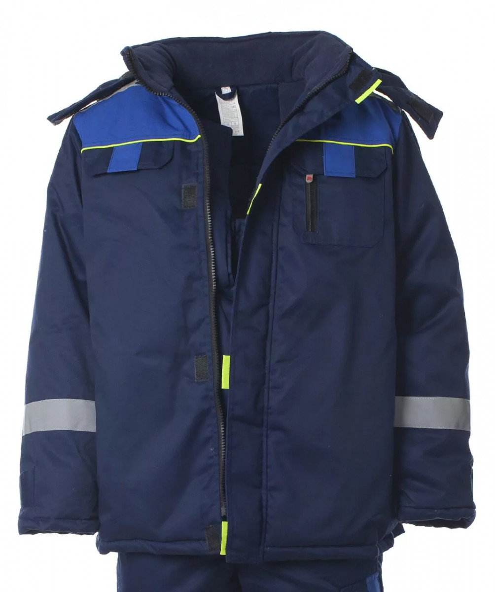 Куртка прямого силуэта, длинная, с притачной утепленной подкладкой, с ветрозащитной прокладкой из ткани «Лаке», Воротник стойка, пристегивающимся утепленным капюшоном, Центральной застежкой на тракторную тесьму-молнию накрытую ветрозащитным клапаном на липучках, внутренним ветрозащитным клапаном, нижними прорезными карманами с листочкой Низ рукавов регулируется по ширине при помощи пат и липучек, По линии талии куртка регулируется по ширине. Полукомбинезон прямого покроя, с притачной утепленной подкладкой, с ветрозащитной прокладкой из ткани «Лаке», с центральной застежкой на тракторную тесьму «молния», На куртке и полукомбинезоне настрочены светоотражающие полосы 5мм для обеспечения безопасности работ Ткань верха Rodos с ВО пропиткой, 65%-п/э, 35%-х/б, пл. 245 гр./кв.м. Ткань "Флис" 100% п/э. Подклад "Лаке" 100% п/э. Утеплитель: Синтепон в куртке 480 г/кв.м., в полукомбинезоне 360 г/кв.м.