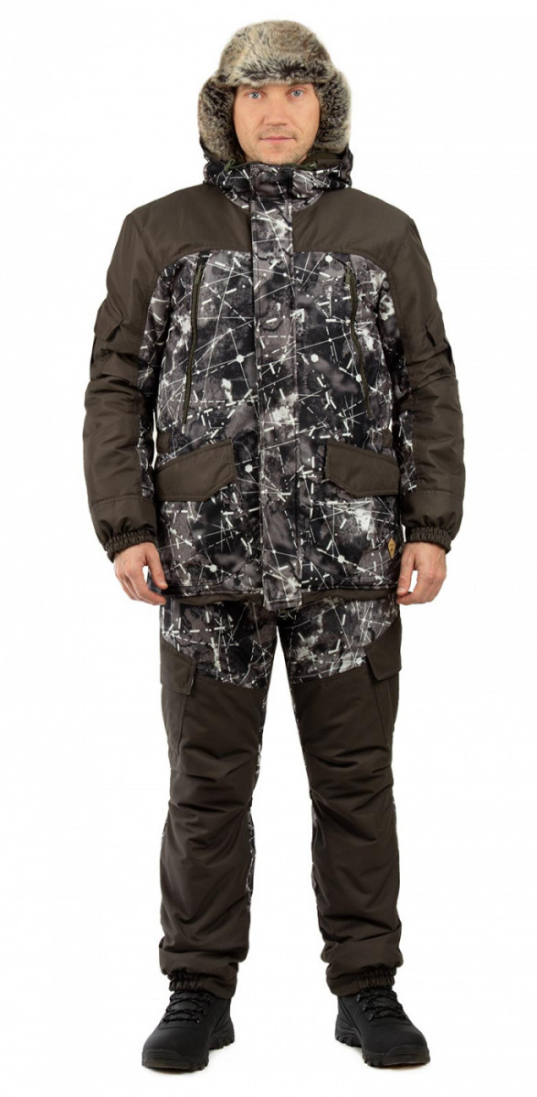Костюм Горка-Зима 2020 из мембранной ткани алова рассчитан на применение в суровых погодных условиях и температуре до -45 градусов. Мембрана Protekt с показателями 10000/10000 в совокупности с утеплителем Русский север защищает от ветра, мокрого снега и холода. Костюм оптимально подходит для работы и отдыха зимой - за счет анатомического кроя костюм Горка-Зима будет удобным и не сковывающим движения. Вставки из материала "кошачий глаз" в местах повышенного износа увеличивают срок эксплуатации костюма. Фирменной чертой костюмов Горка является большое количество функциональных карманов, как прорезных, так и накладных. Лямки по системе кобура надежно фиксируются и не спадывают с плеч.