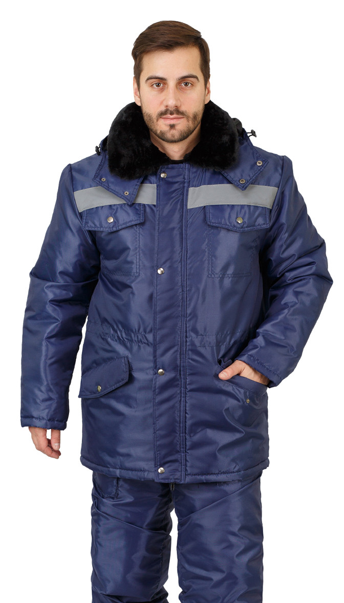 Костюм «Градус» , состоит из куртки и полукомбинезона из курточной ткани с водоотталкивающими и ветрозащитными свойствами. Куртка прямого кроя с центральной застежкой на двухзамковую прочную молнию типа "Трактор" и ветрозащитную планку на кнопках и липучках. Капюшон съемный, на молнии с регулируемым объемом, позволяет одевать капюшон на каску. Высокий воротник - стойка с мягким теплым флисом по внутренней стороне. Верхние врезные и нижние накладные утепленные карманы . Нижние вместительные накладные карманы с клапаном застегиваются на контактную ленту. Внутренний карман на молнии. На правой полочке груди карман для пропуска с с прозрачной защитной пленкой. Рукава с трикотажными напульсниками. Объем по линии талии спинки регулируется при помощи эластичного шнура и кулиски. Полукомбинезон с центральной застежкой на двухзамковую молнию, регулировкой объема по талии и бретелями с эластичной тесьмой и застежкой на фастексы. Полукомбинезон имеет два боковых кармана и один нагрудный карман.