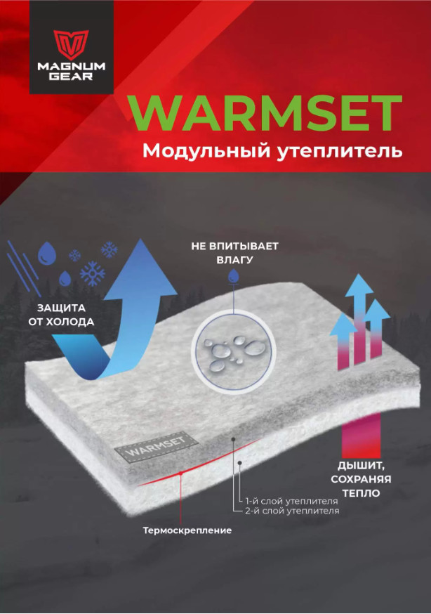 Высокая теплоизоляция благодаря утеплителю WARMSET.