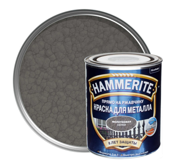 Краска Hammerite молотковая серая 0,75л по металлу прямо на ржавчину 3в1