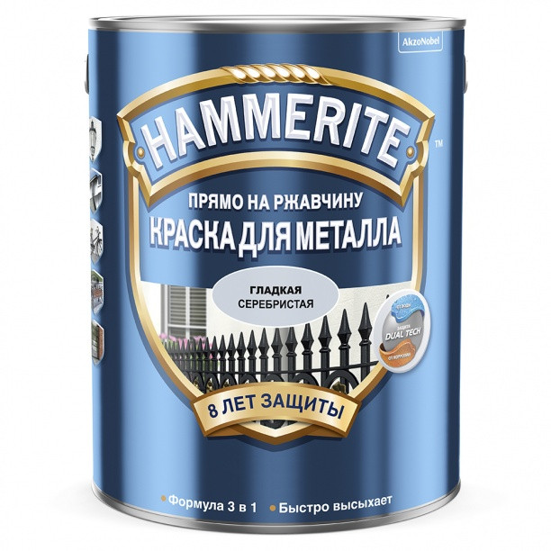 Краска Hammerite молотковая серебристо-серая по металлу прямо на ржавчину 3 в 1 0,5 л
