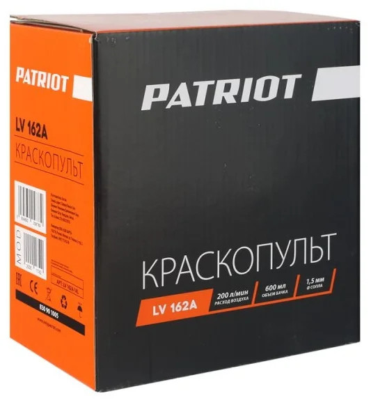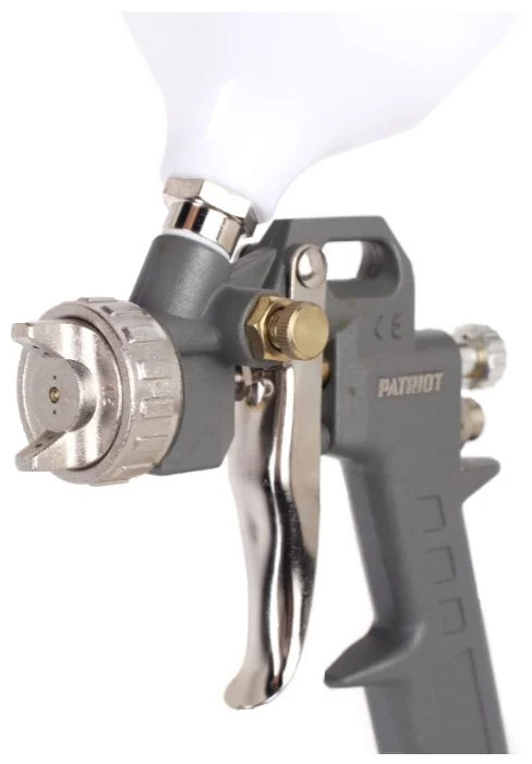 Краскораспылитель PATRIOT LV 162А 830901005 работает на сжатом воздухе и отличается безопасностью в эксплуатации - нет риска короткого замыкания. Модель применяется для покраски небольших поверхностей - участка стены, корпуса автомобиля, элементов строительной конструкции. Бачок для краски располагается сверху и не мешает пользователю при работе. Простая конструкция приспособления не ломается и не вызывает затруднений при эксплуатации.