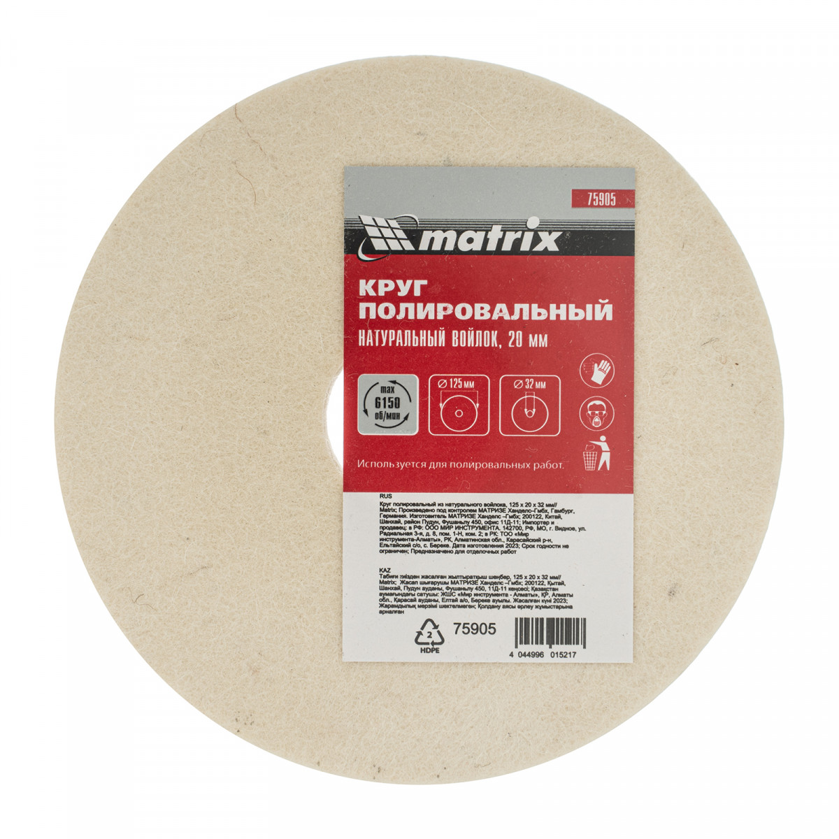 Круг полировальный из натурального войлока, 125 х 20 х 32 мм Matrix
