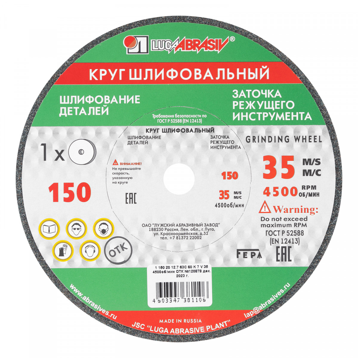 Шлифовальный круг Луга 73481 размером 150 х 20 х 12,7 мм, с абразивом 63C (зеленый карбид кремния), с зернистостью F60 и твердостью K, L, — оснастка для электрических точил с соответствующим посадочным диаметром. Круг применяется для предварительного и комбинированного шлифования изделий из бронзы, чугуна, латуни и других твердых материалов, а также сталей, алюминия и меди. Эффективен для заточки режущих инструментов. Абразивный материал из частиц высокотвердого зеленого карбида кремния обеспечивает высокую шлифующую способность круга.