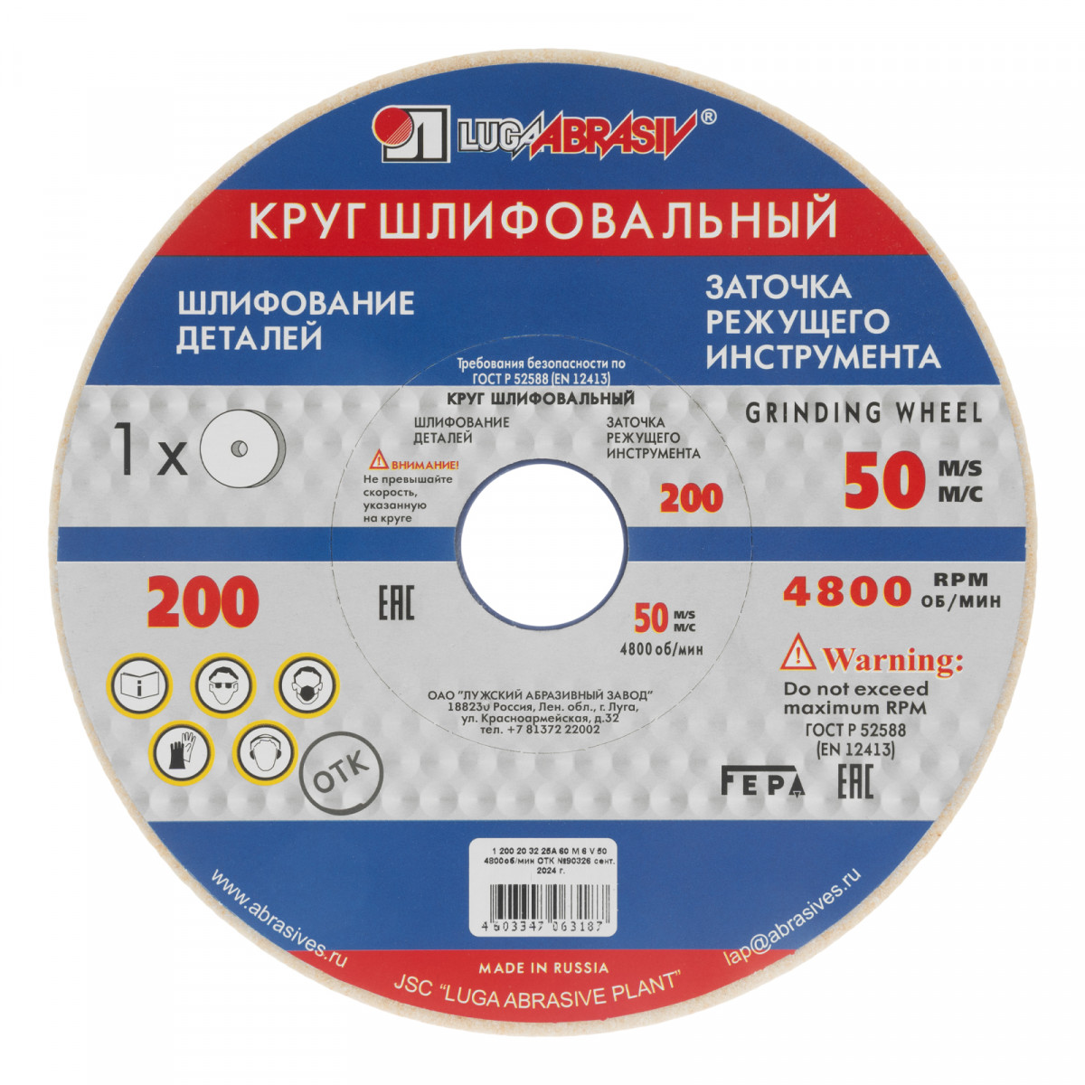 Шлифовальный круг Луга 73468 размером 200 х 20 х 32 мм, с абразивом 25A (белый электрокорунд), зернистостью F60 и твердостью M, N, устанавливается на точило с соответствующим посадочным диаметром и предназначен для шлифования закаленных деталей из углеродистых, нержавеющих и быстрорежущих сталей. Подходит также для заточки режущих кромок, обработки тонких деталей и инструментов — зубьев, ножей, сверл, резцов. Круг успешно справляется с твердыми материалами благодаря абразивным частицам из белого электрокорунда.