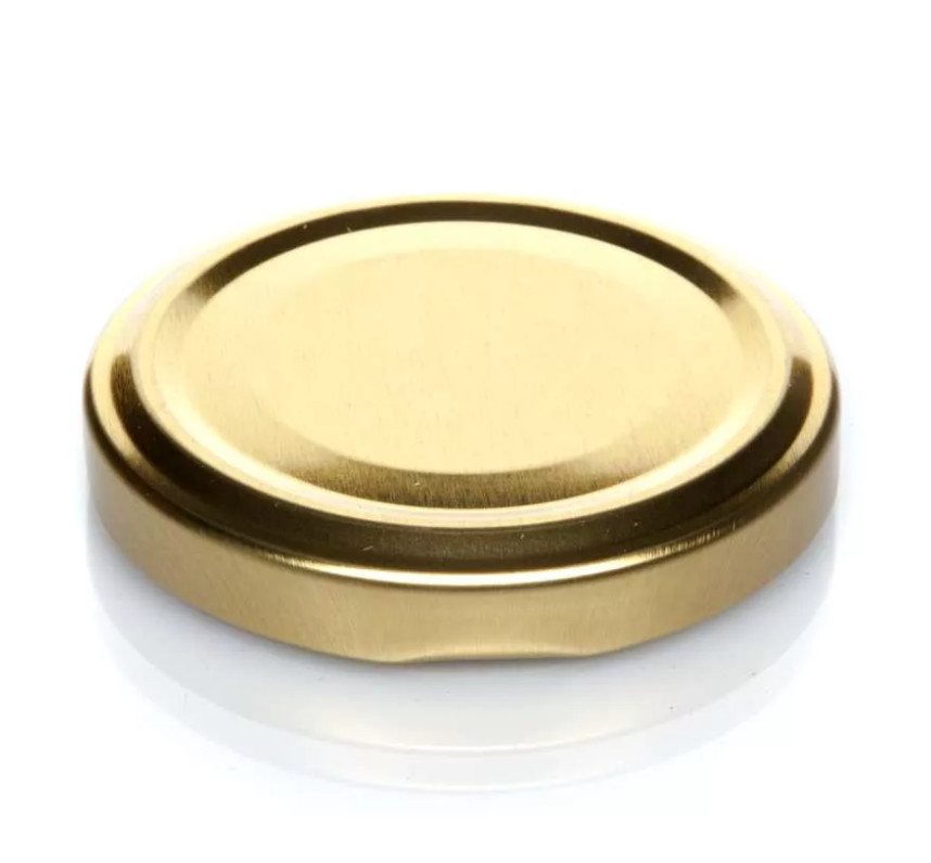 Крышка винтовая металлическая. Изготовлена из белой жести, покрыта пищевыми лаками.Внешняя сторона крышки покрыта золотистым лаком. Крышка имеет 6 усиков для сцепки с горловиной банки.