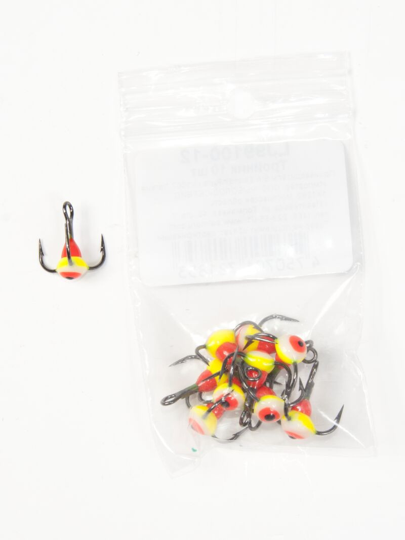 Тройники с пластиковой цветной каплей. Используется для комплектации балансиров и вертикальных блёсен.