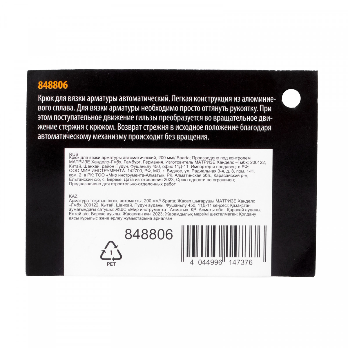 Крюк для вязки арматуры автоматический, 200 мм Sparta