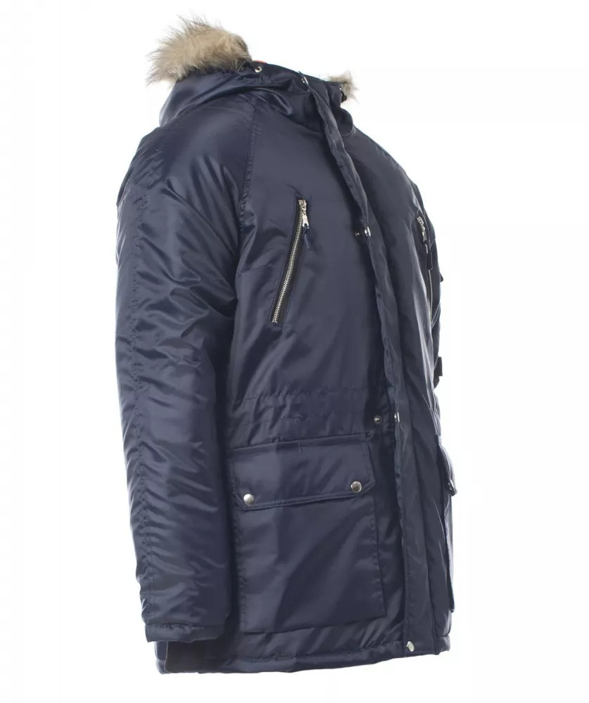 Куртка "Аляска" представляет собой удлиненную модель. Она оснащена ветрозащитной планкой на кнопках, которая обеспечивает дополнительную защиту от ветра. Верхние прорезные карманы на куртке выполнены с использованием металлической молнии, что обеспечивает надежность и безопасность хранения вещей. Нижние накладные карманы имеют два входа. Рукава покроя "реглан" обеспечивают свободу движения. ТКАНЬ ВЕРХА: «Оксфорд 210» с полиуретановым водонепроницаемым ветрозащитным покрытием (100% ПЭ, пл. 95±10гр/м²) УТЕПЛИТЕЛЬ: «Синтепон» трехслойный, в куртке – 450 г/м2 (3 слоя в корпусе, 2 в рукавах)