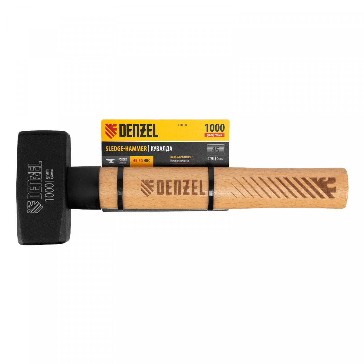 Кувалда, 1000 г, кованая головка, буковая рукоятка Denzel