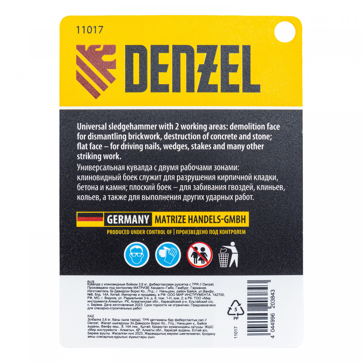 Кувалда с клиновидным бойком 3,6 кг, фибергласовая рукоятка c TPR Denzel