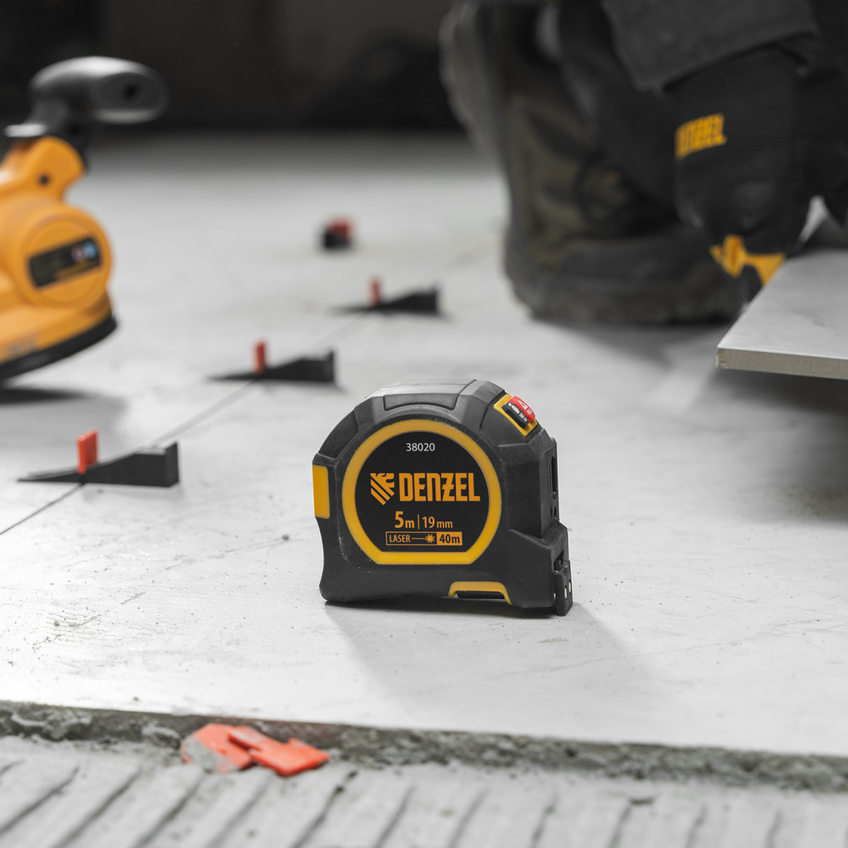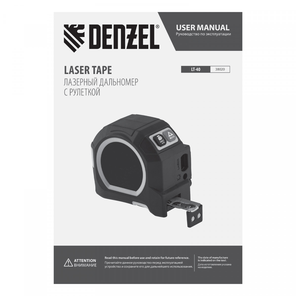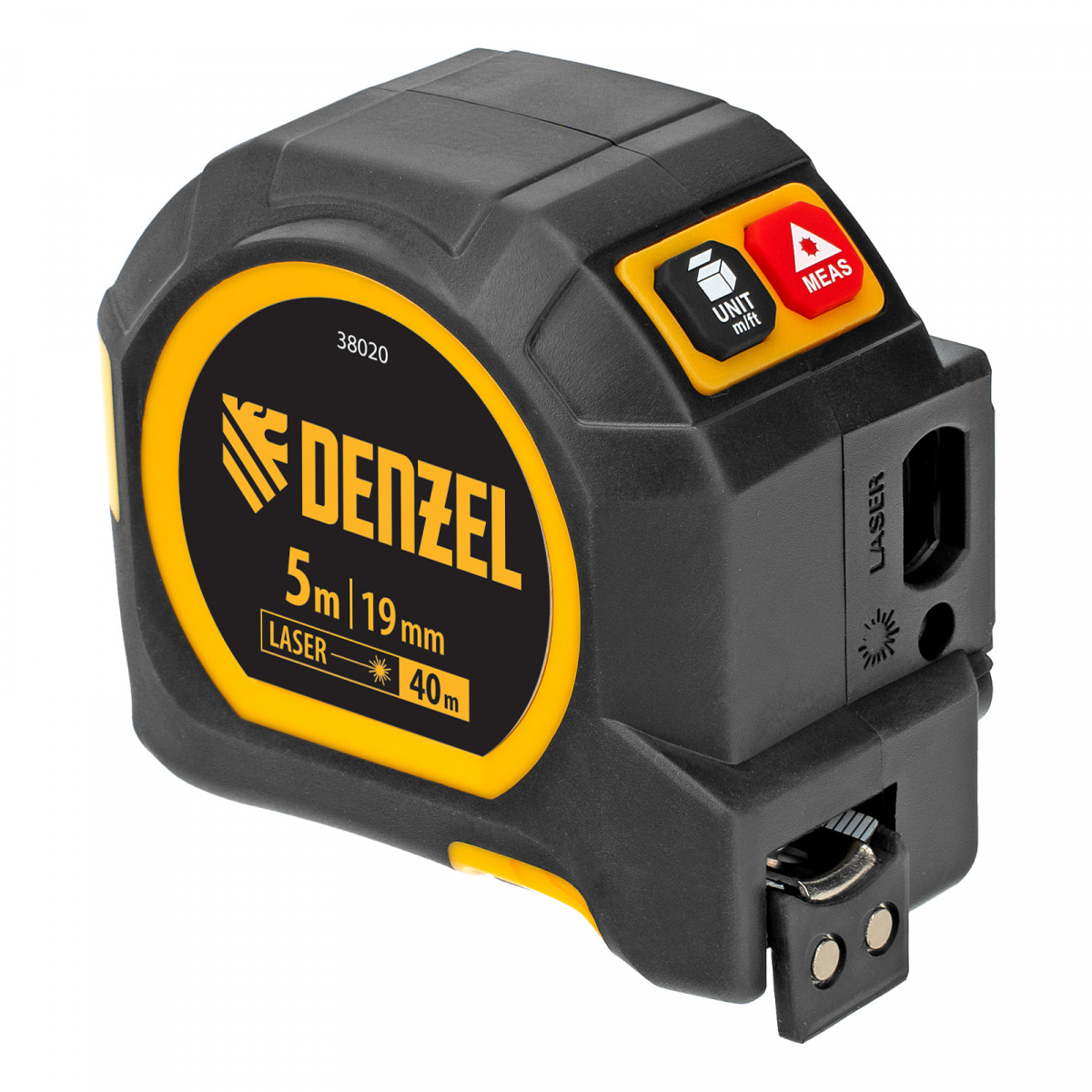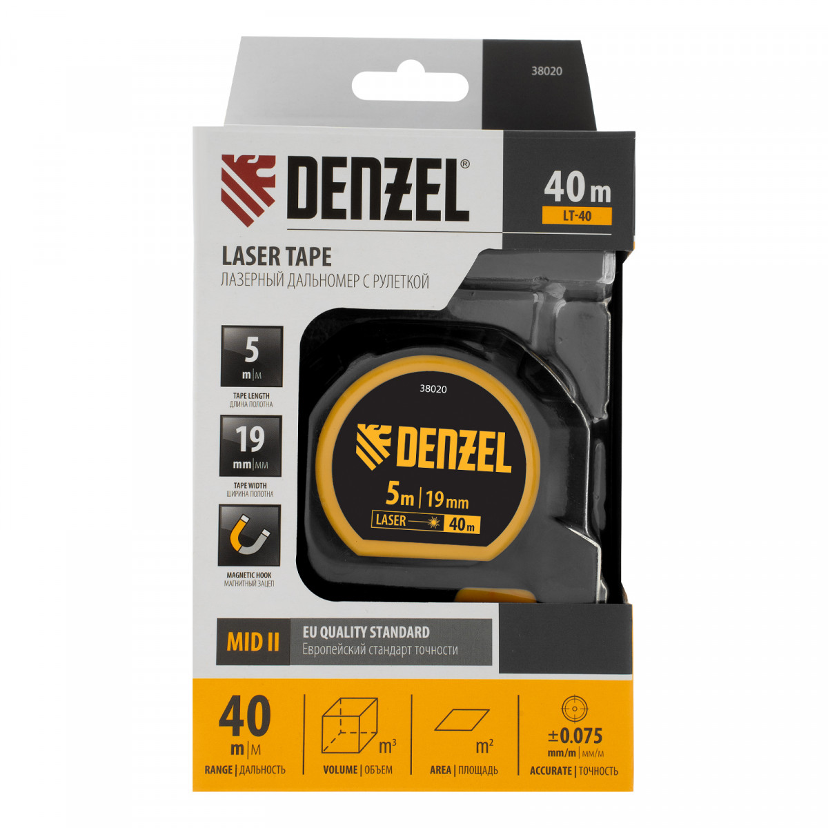 Лазерный дальномер с рулеткой LT-40, 5м x 19 мм, дальномер 40м, автомат. фиксация Denzel