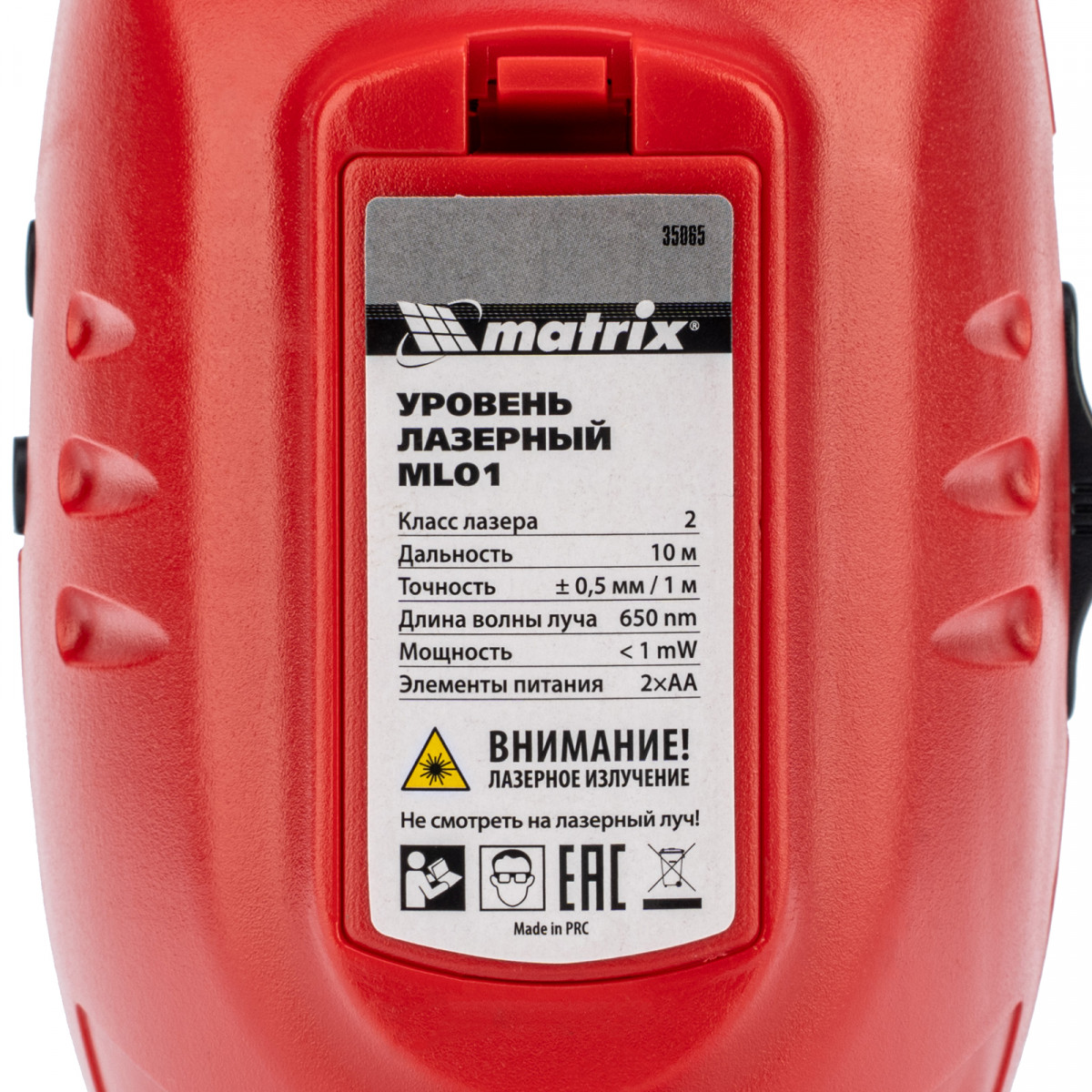 Лазерный уровень ML01T, дальность 10 м, точность ± 0,5 мм, / 1 м, длина волны 650 нм, проекция 1 вертикальная 1 горизонтальная плоскость, резьба под штатив 5/8" Matrix