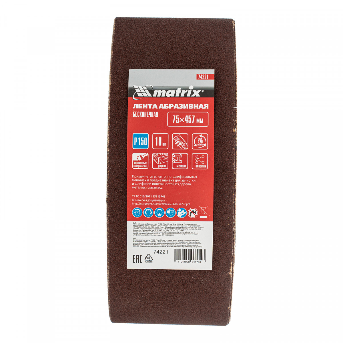 Лента абразивная бесконечная, P 150, 75 х 457 мм, 10 шт Matrix