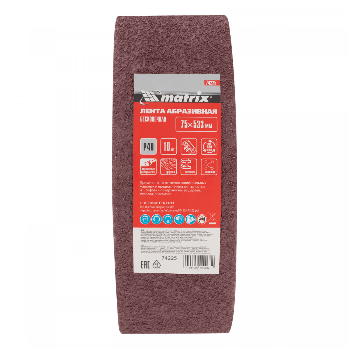 Лента абразивная бесконечная, P 40, 75 х 533 мм, 10 шт Matrix