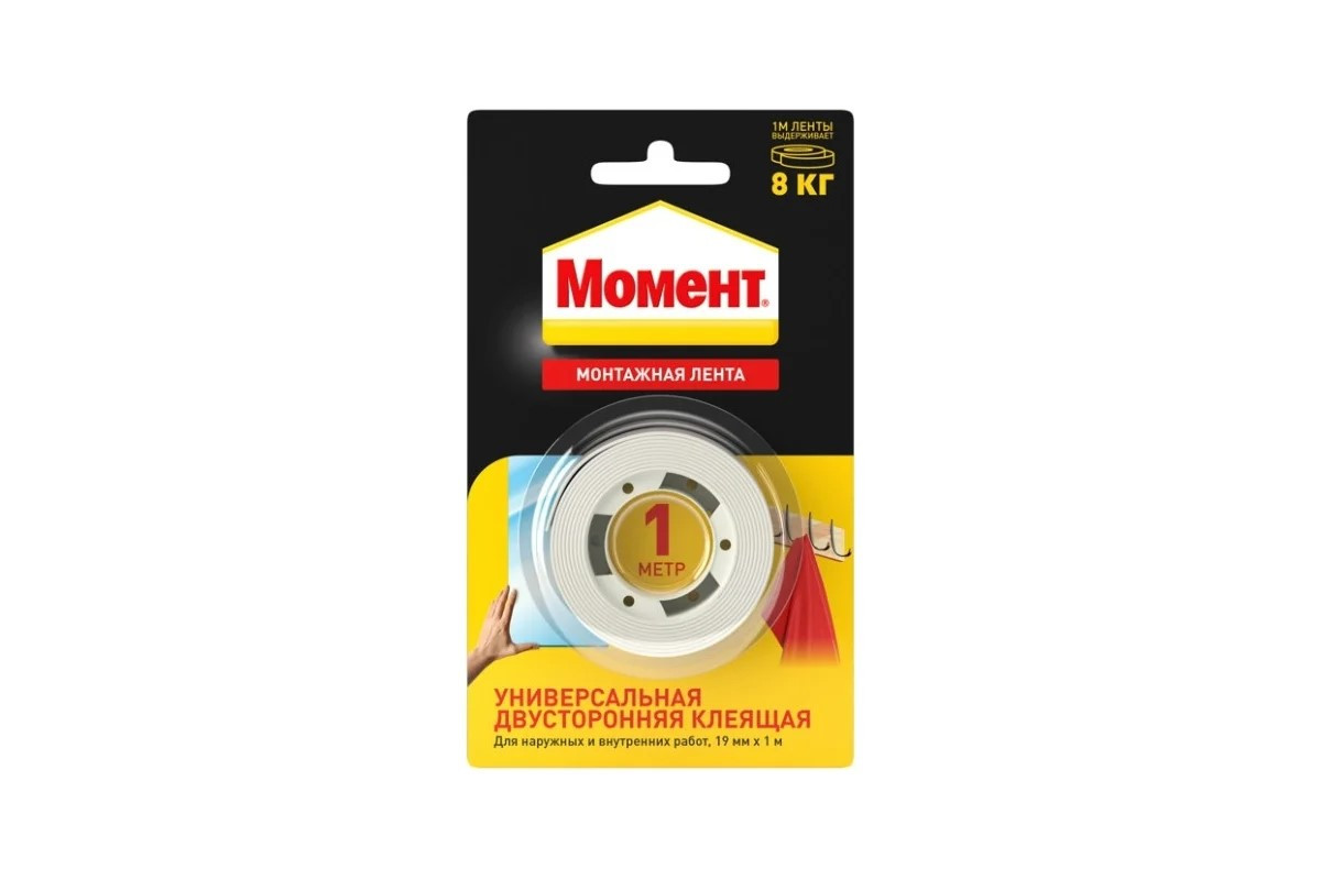Лента Клеящая монтажная двусторонняя МОМЕНТ 1 м