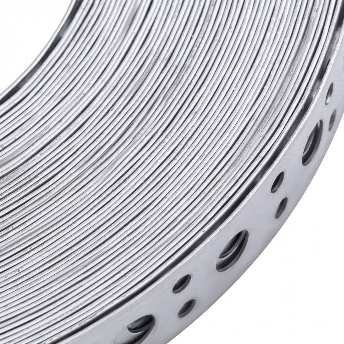 Перфорированная вентиляционная лента Сибртех 46551 с покрытием из цинка, прямая, толщиной 1 мм, шириной 2 см и длиной 25 м, используется для скрепления узлов и деталей, формирования хомутов и подвесов при монтаже трубопроводов и прокладке кабелей, а также для придания жесткости строительным конструкциям. Ленту можно крепить к каменным, деревянным, кирпичным и бетонным поверхностям. В зависимости от материала основания и выбора мастера крепежами могут быть шурупы, саморезы, шпильки и анкерные болты. Вентиляционная перфолента будет полезна строителям, электрикам, сантехникам и мастерам по ремонту зданий.