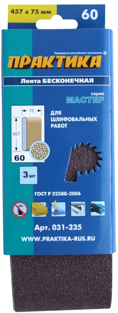 Лента шлифовальная ПРАКТИКА 100 х 610 мм P60 (3шт.) картонный подвес