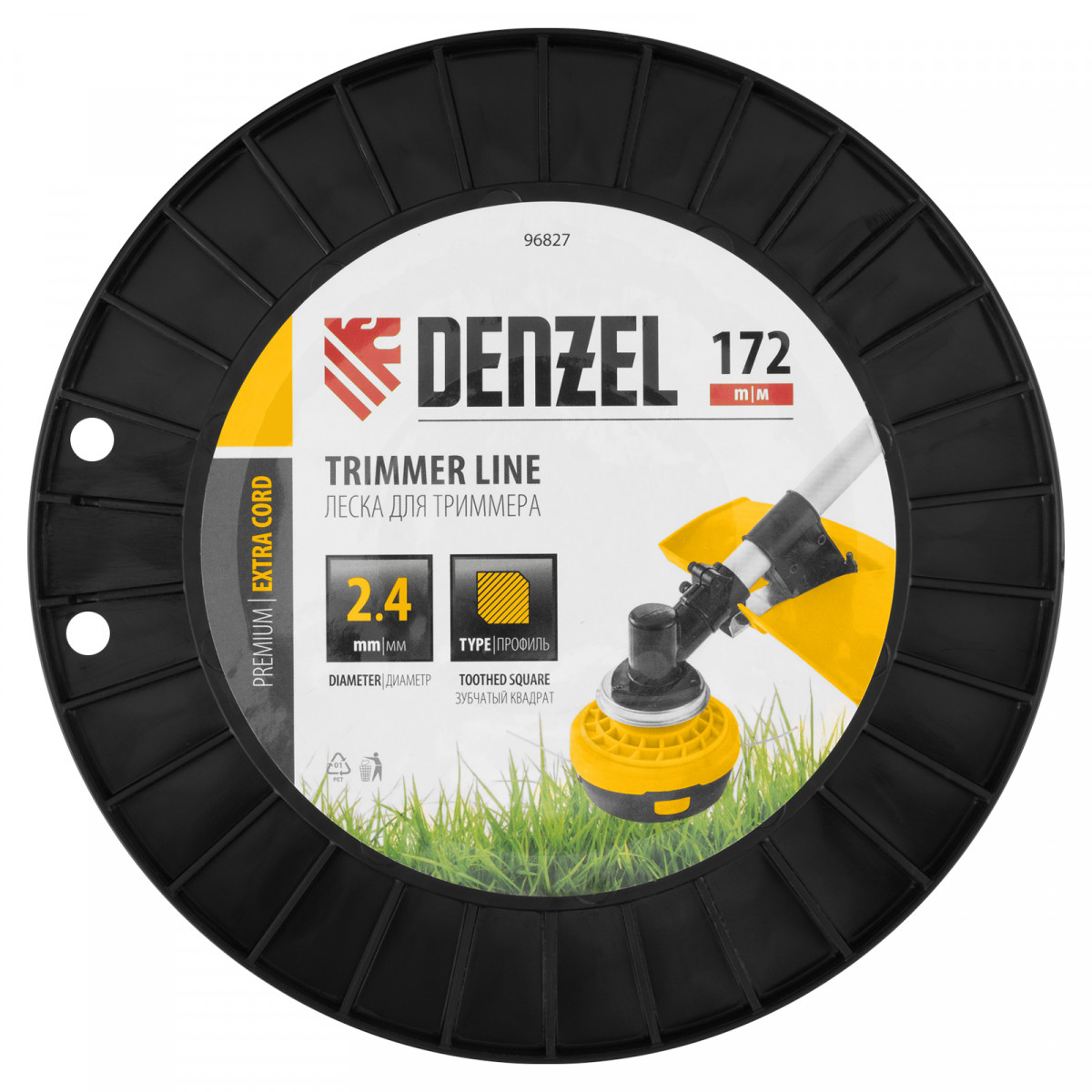 Леска для триммера двухкомпонентная зубчатый квадрат, 2,4мм х 172м, на DIN кат. EXTRA CORD Denzel
