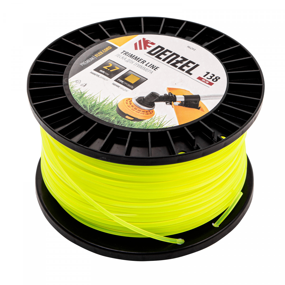 Леска для триммера квадрат, 2,7м х 138м, на DIN катушке FLEX CORD Denzel
