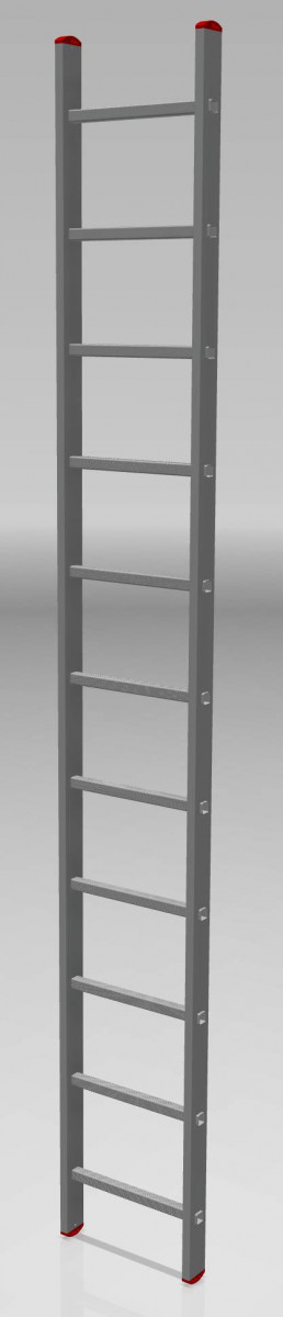"Пприставная лестница.Технические преимущества:максимальная прочность и надёжность при небольшом весе изделия, стойки и ступени изготовлены из прессованного профиля, многократная развальцовка в соединении ступеней со стойками обеспечивает высокую прочность и долговечность, рифлёные ступени с шагом 260 мм для безопасного подъёма и спуска, надёжно закреплённые в стойках пластиковые наконечники препятствуют скольжению